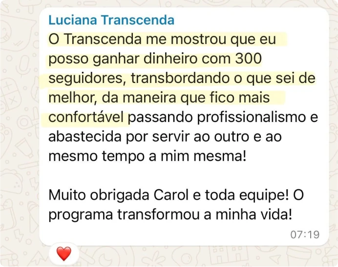 Desde bem pequena, Deus te deu talentos pra que você pudesse multiplicar e transcender, mas ninguém te ensinou como fazer isso. O Programa Transcenda será o seu COMO.